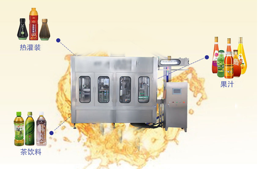 ? ? ? ?果汁灌裝機適用于果汁、茶飲料、功能飲料及果味奶飲料的灌裝。在溫度控制器的幫助下,該機器能夠進行80-95度高溫熱灌裝。本設備采用瓶頸懸掛技術,適用于各種瓶型,更換瓶型只需調節傳送鏈的高度即可,方便快捷。全機PLC控制變頻調速,自動化程度高,自動控制進液,液位控制準確,無滴漏。與物料接觸部分均為食品級304優質不銹鋼。是飲料廠家的優選產品。